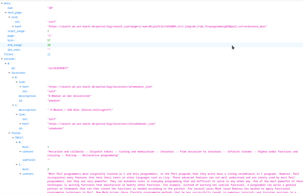 Egal wie Informationen bereitgestellt werden sollen. Ob wie bei der REST-Schnittstelle mit JSON, als CSV für die Weiterverarbeitung in Excel, als RDF, als METS/MODS, als Lido für Münzen oder iCAL für die Übernahme in einen Kalender: Eine Resource kann viele Repräsentationen haben und eine Erweiterung um zusätzliche Formate ist jederzeit möglich